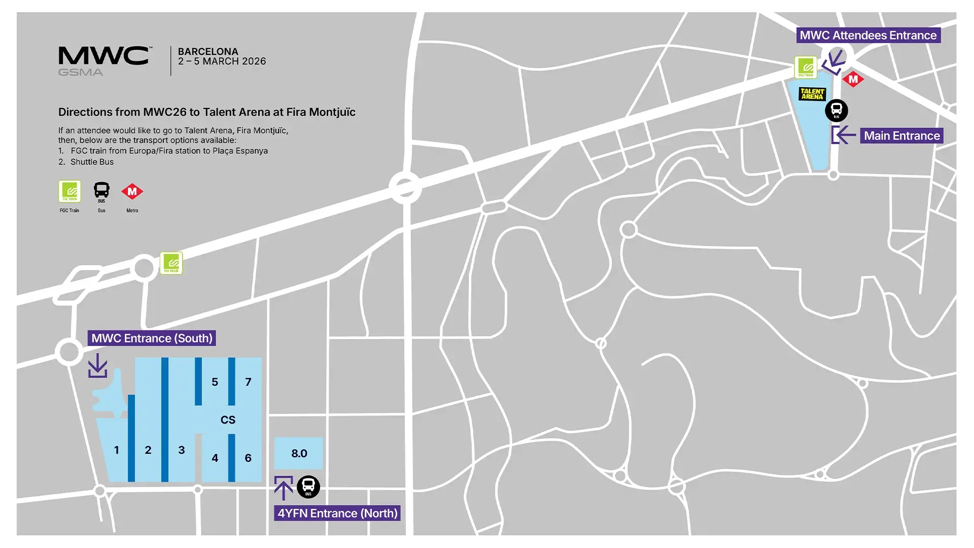 Experience it for yourself from 2-4 March at Fira Barcelona Montjuïc - Hall 8, in Plaça Espanya. No extra registration required – simply present your MWC or 4YFN digital access pass at the priority entrance and step right in.